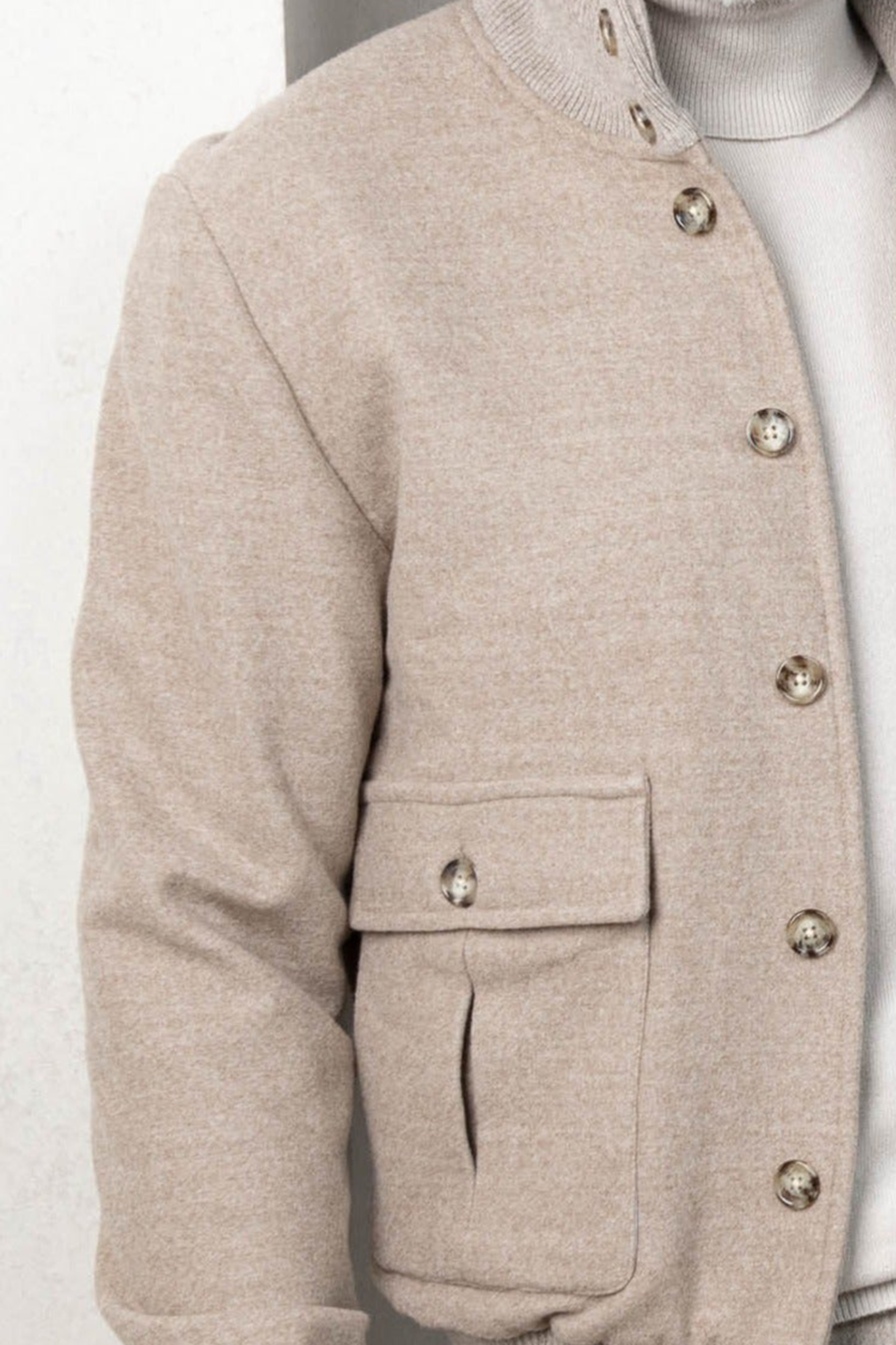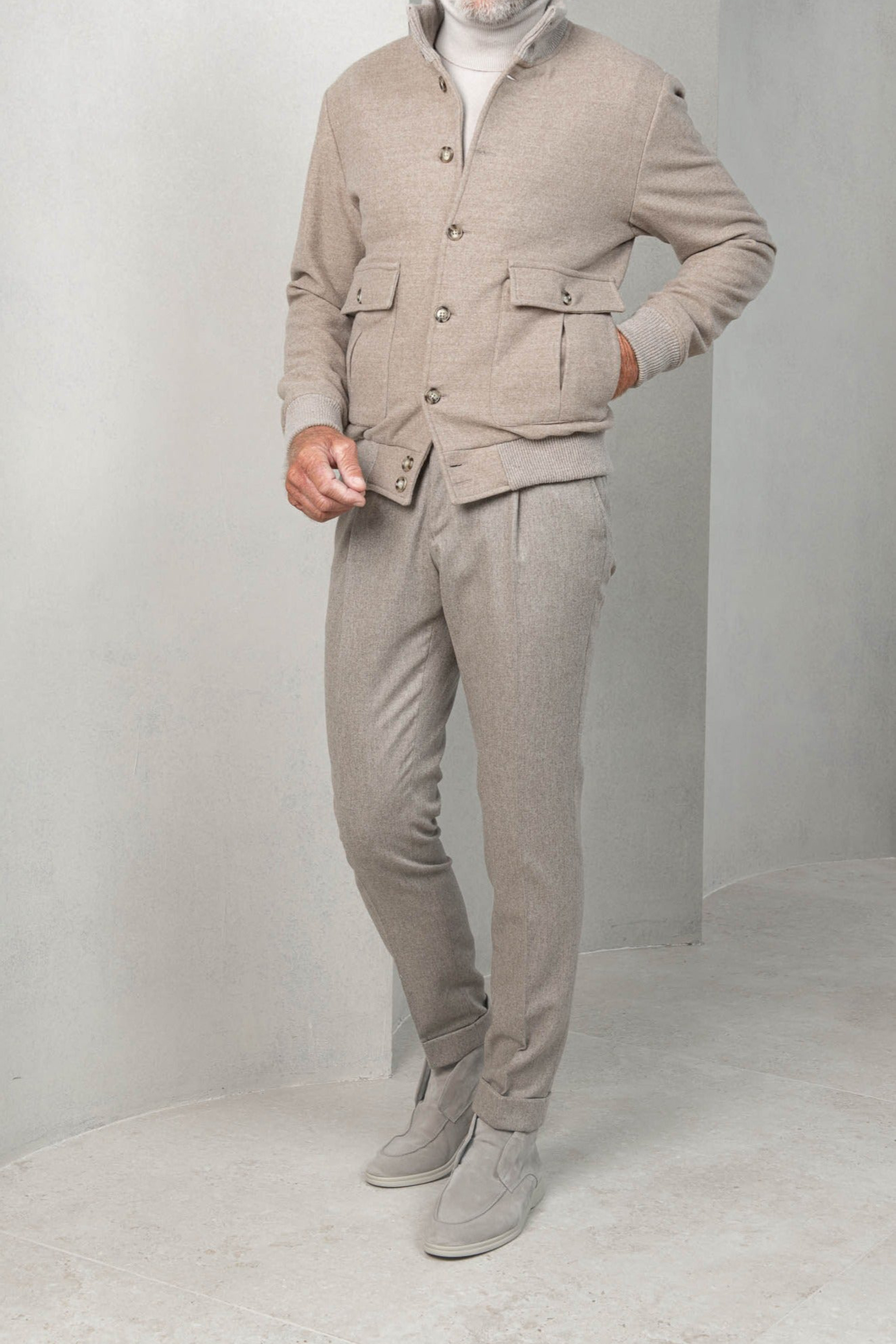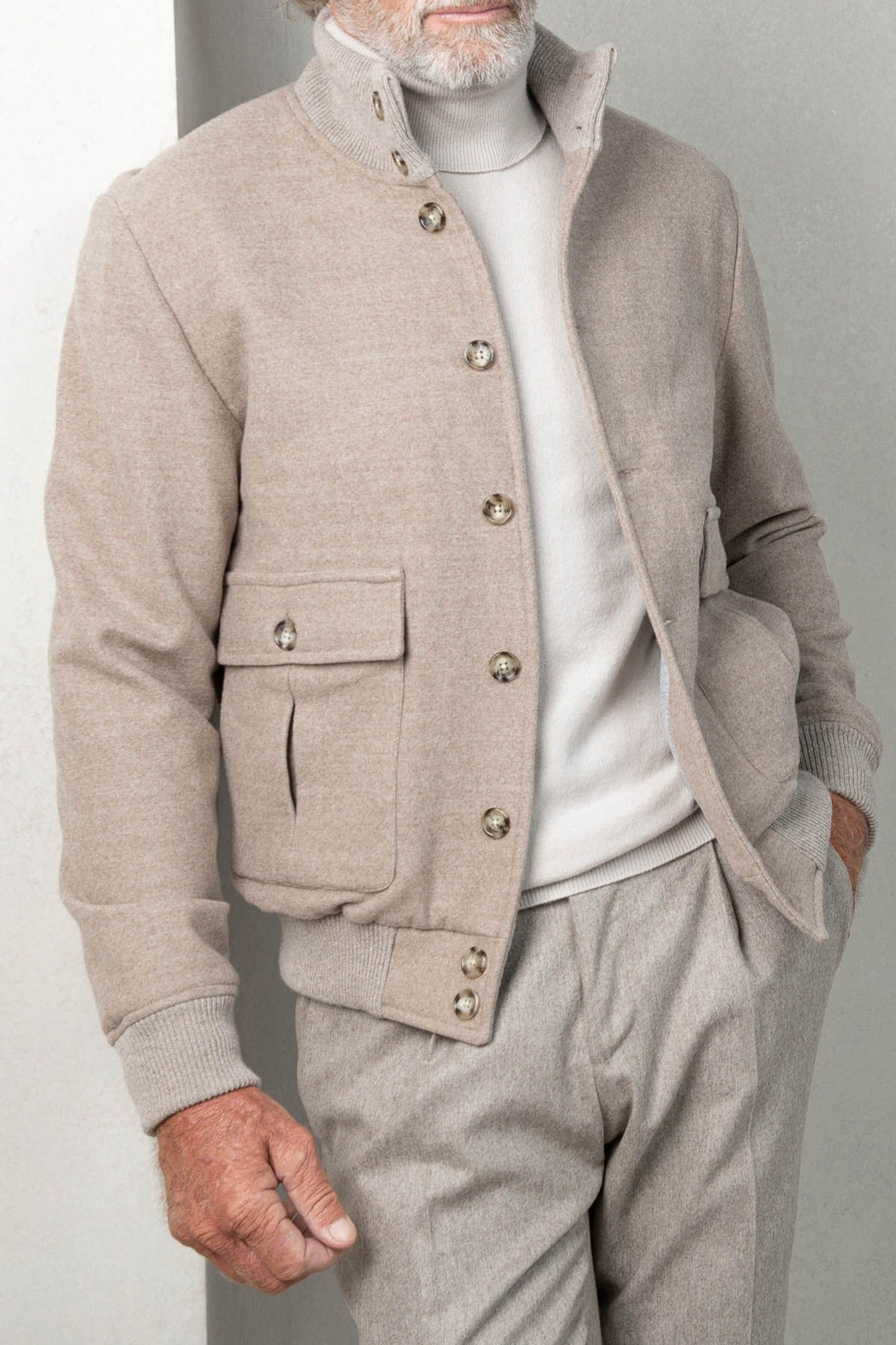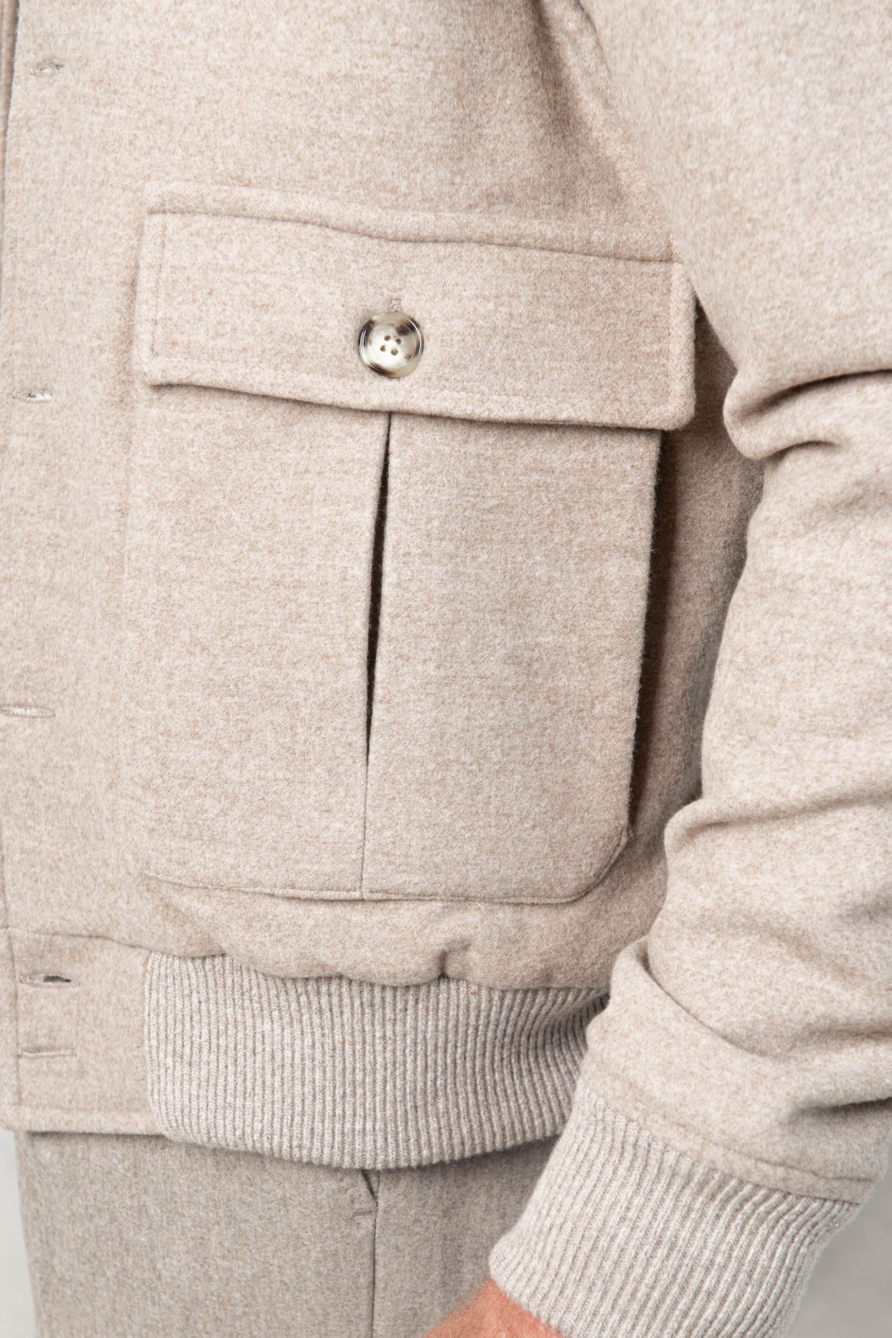 BEIGE SUPER 180'S WOOL FLANNEL BOMBER JACKET