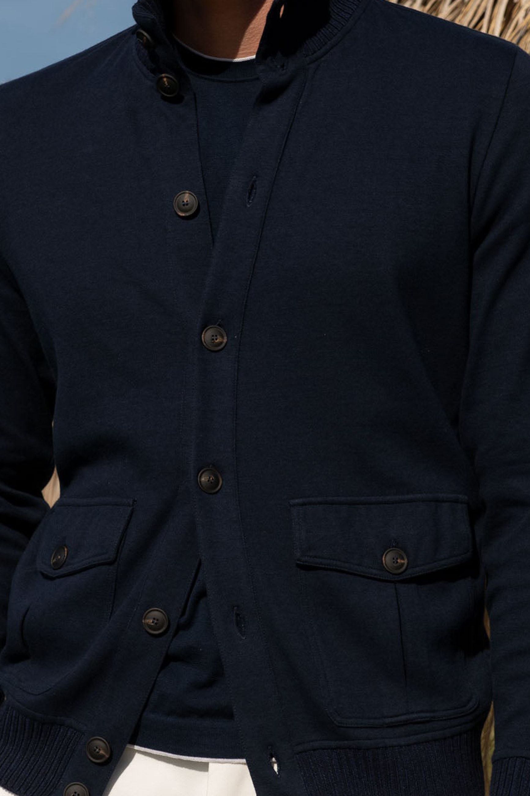 The college jacket in light grey takes a classic bomber silhouette and equips it with a compact cotton, wool and PA blend to create a casual layering piece. It features a press studs fastening, ribbed cuffs and hem.