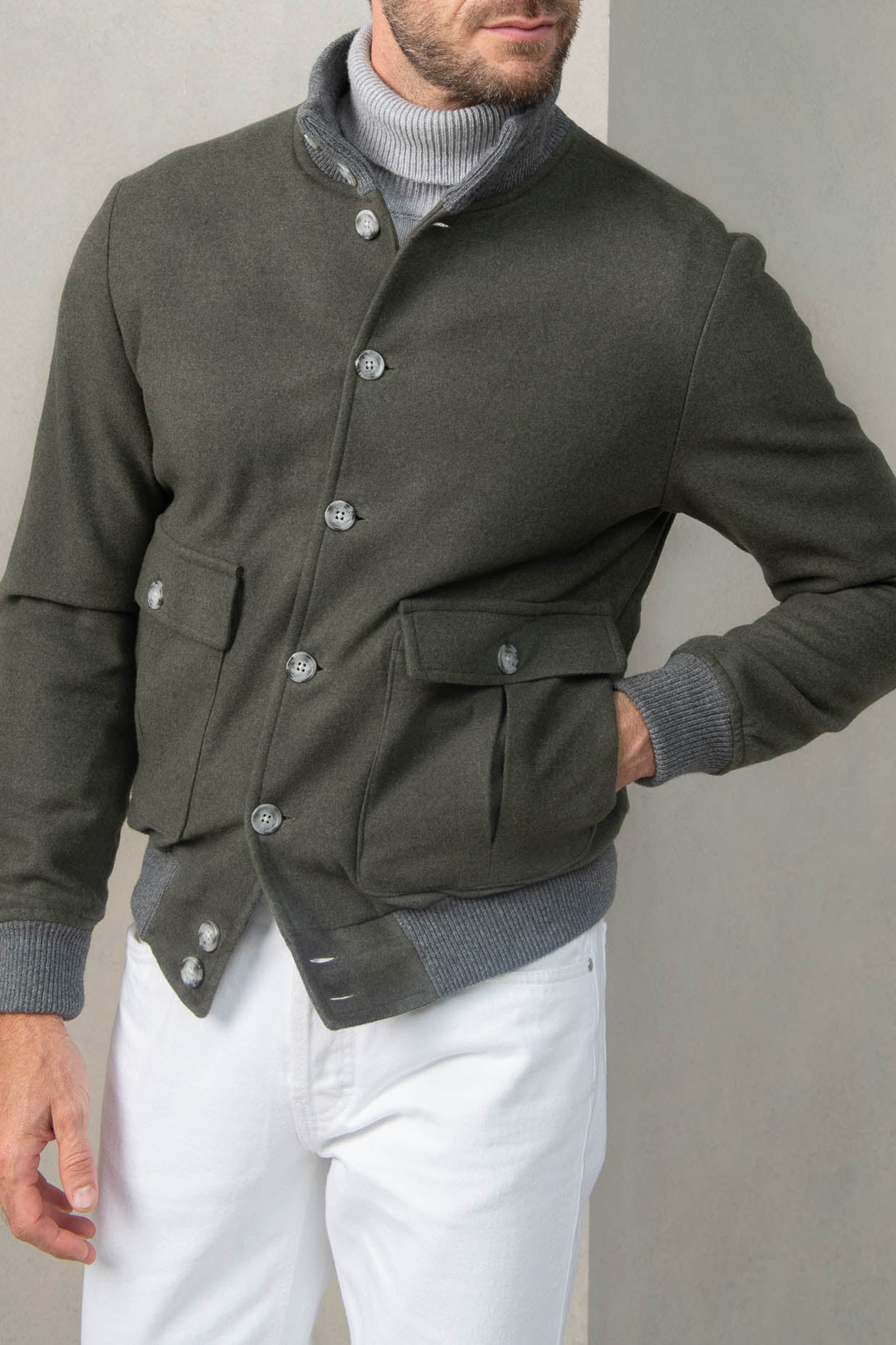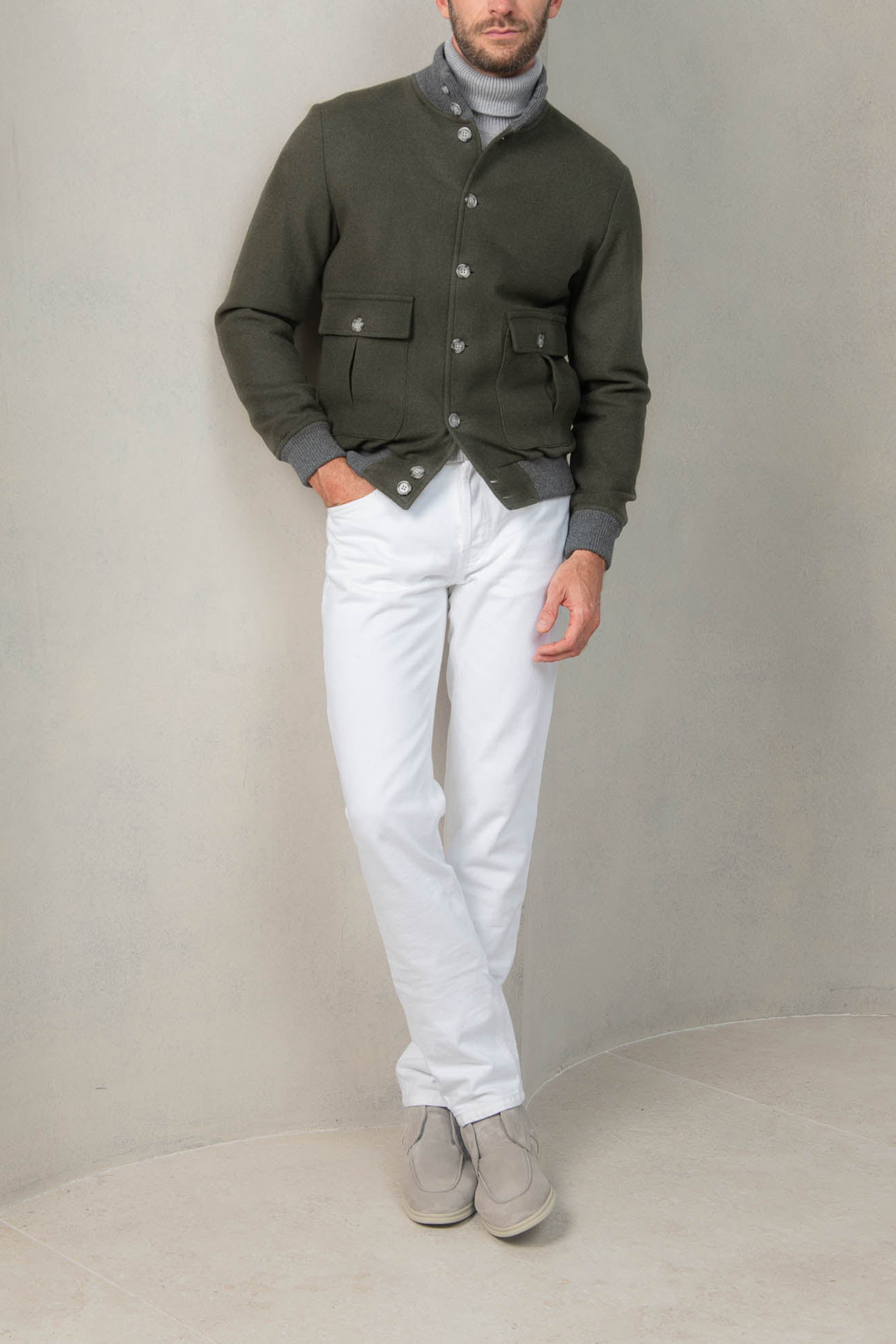 This versatile addition to a sartorial wardrobe will comfortably elevate any casual outfit and pair itself elegantly with our Soragna trousers, our denim and a knit or a shirt.