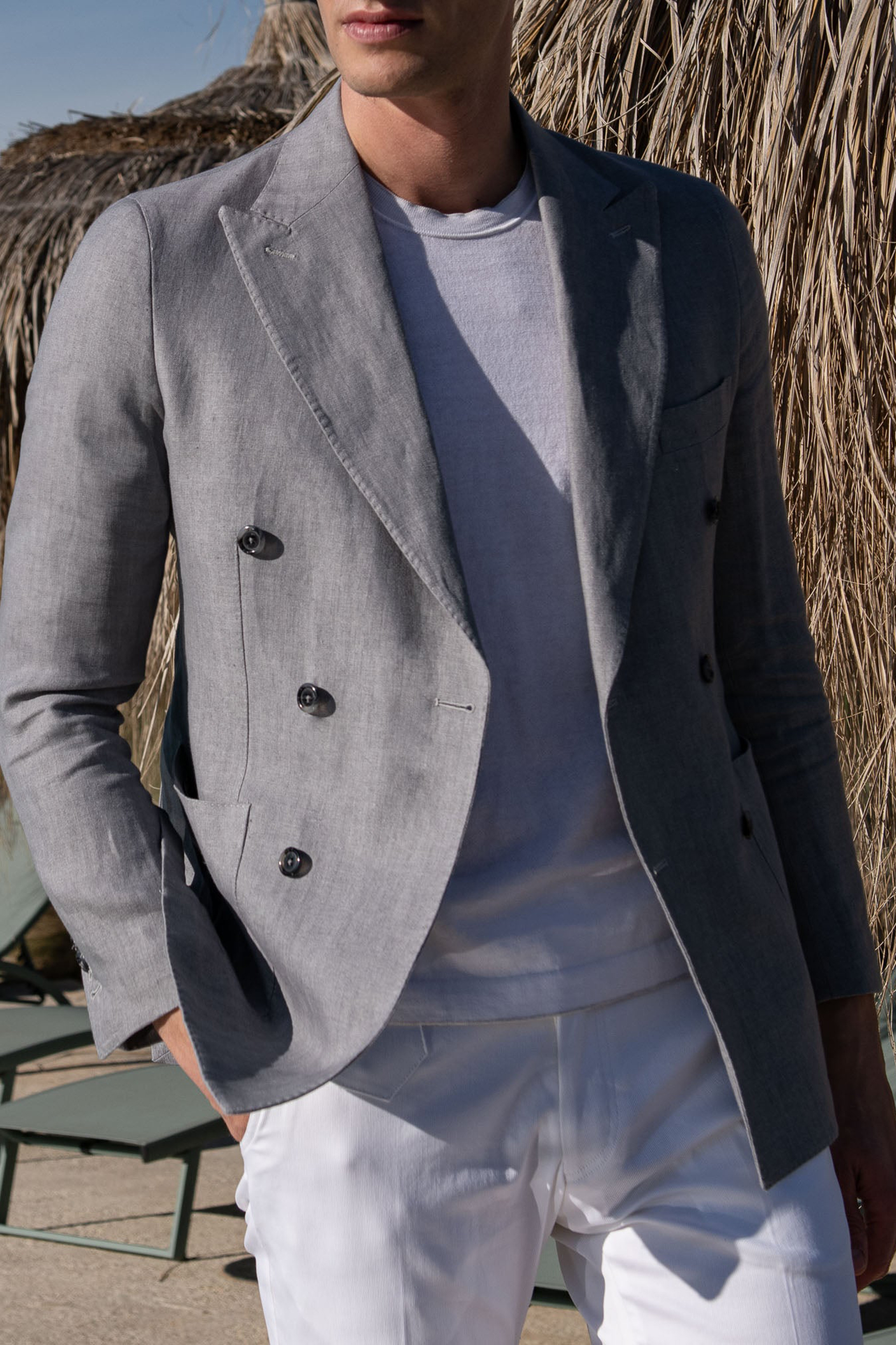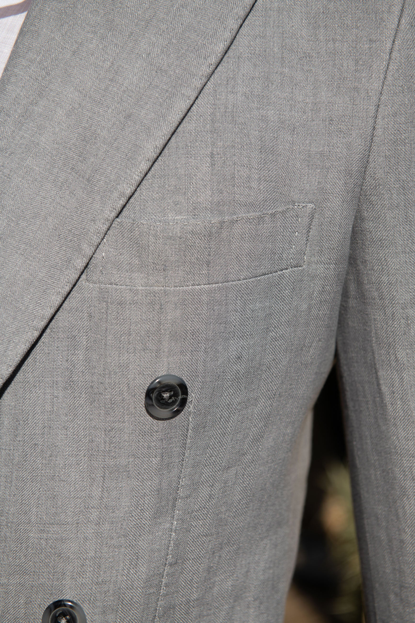 Sky Grey Herringbone Double Breasted Linen Jacket