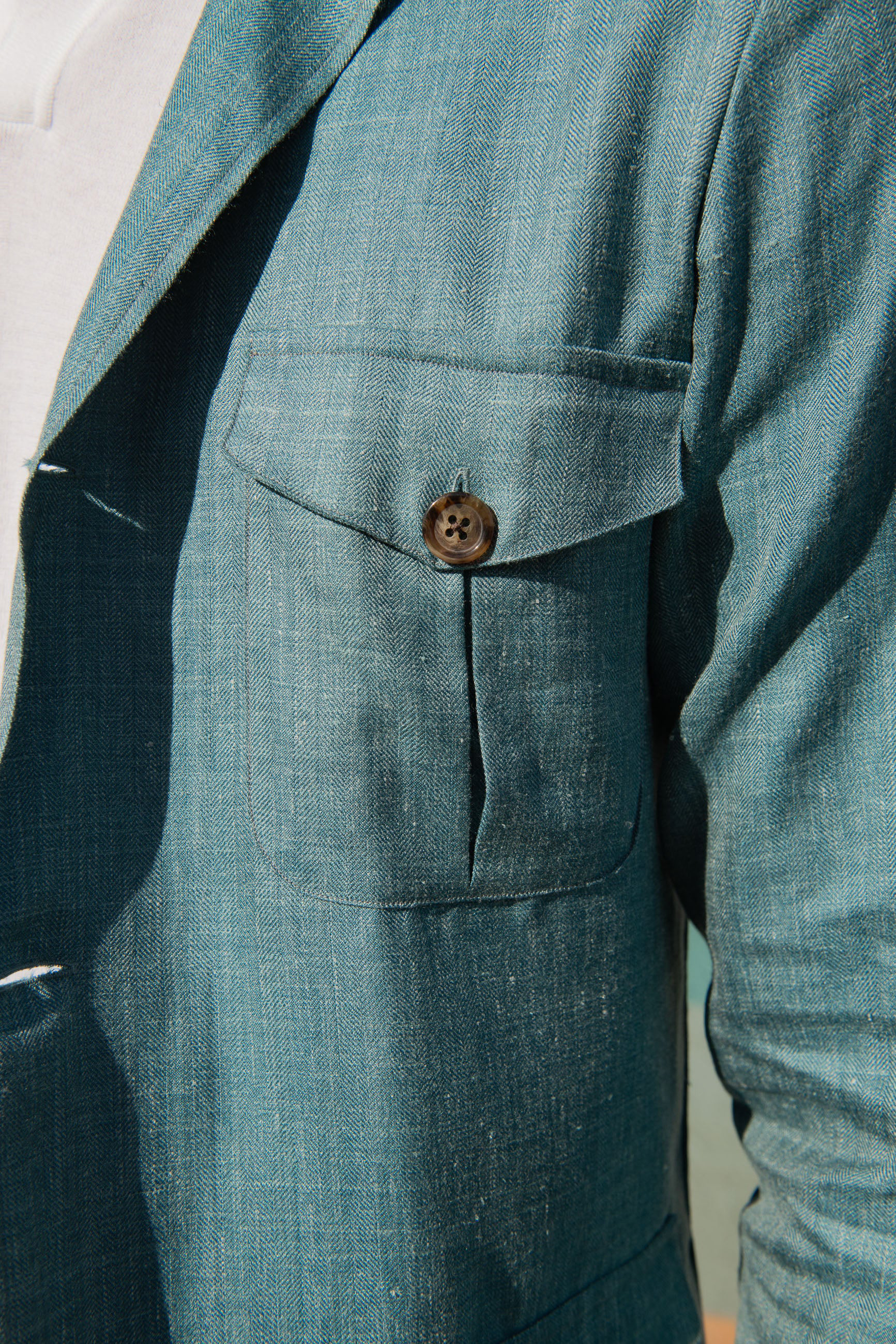 Water green Safari Jacket in Loro Piana wool silk and linen